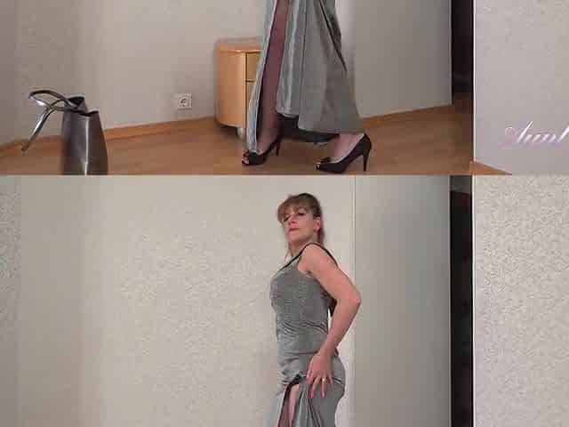 Amateur in nylon stockings and high heel shoes