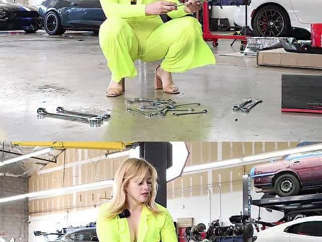 ASMR: Breasty Golden-haired Checks Car in Transparent Costume showing her BUTT