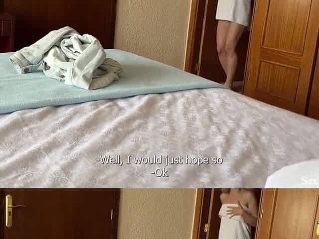 Public Coffee on Vacation with Blonde Stepmom and hardcore sex in hotel room after it