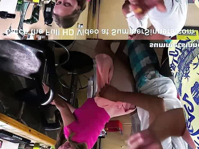 Teen Eva with striped stockings fucked by step dad on vacation