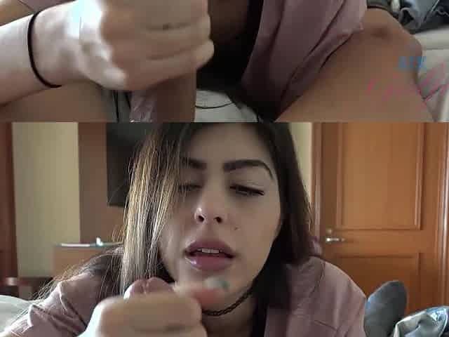 Real Indian Wife Handjob in USA Vacation Big Cum on Tits