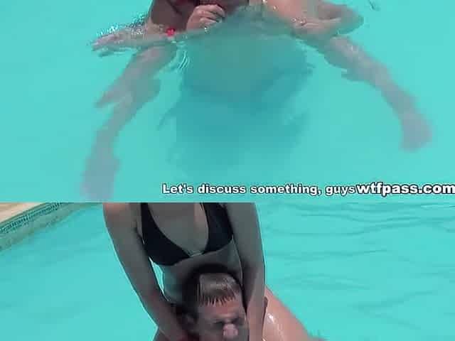 Kinky girlfriend rims black stud on vacation. Stunning brunette Evelyn sits in the pool after meeting a guy in the hotel to live