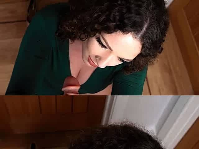 Exotic babe Isabella Jules gives a POV blowjob to the beef whistle with her cute mouth
