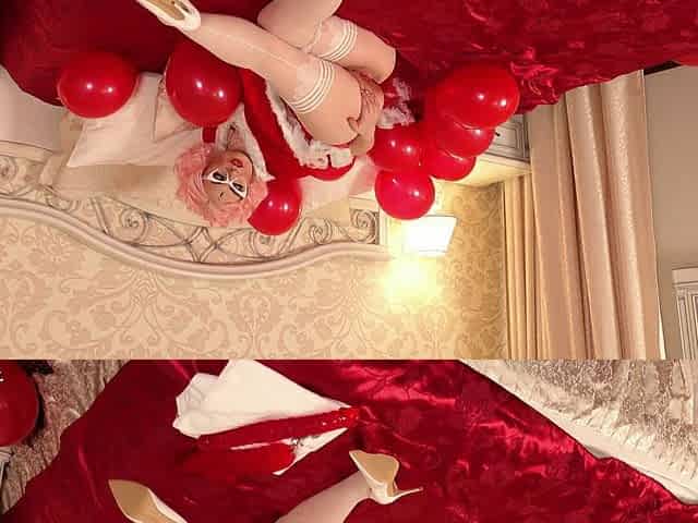 MILF pussy masturbation and air balloon fun, Santa holiday