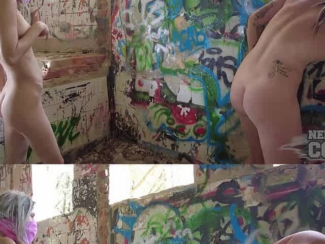 Hot Chicks Painting Graffiti In The Nude On Vacation Risky Public Nudity