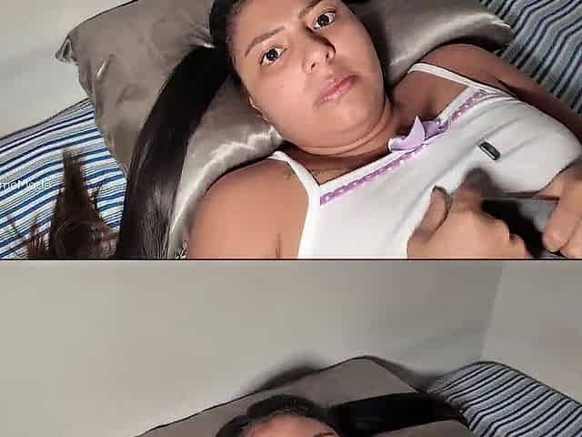 Insatiable webcam babe Moreincb pleasures herself at home while hubby is at work, showing off her juicy pink pussy and huge boob