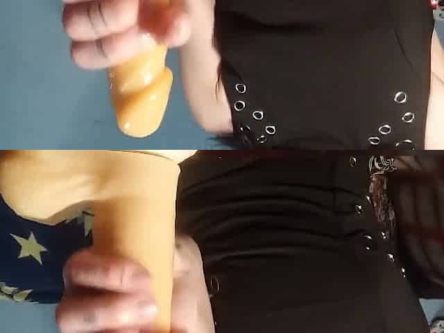 morena excitada cogió el respaldar de la cama para poner el sex tool y metercela por la cunt