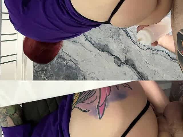 Latex banging with large vibrator