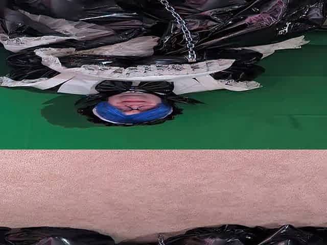 Layered PVC Maid Aoi in a lengthy magic wand sex-toy session