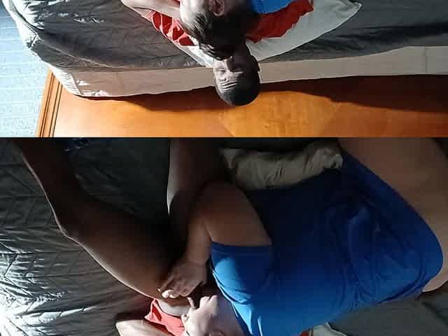 Stepson's allies wank looking at my large curly cunt, I love their hard rods