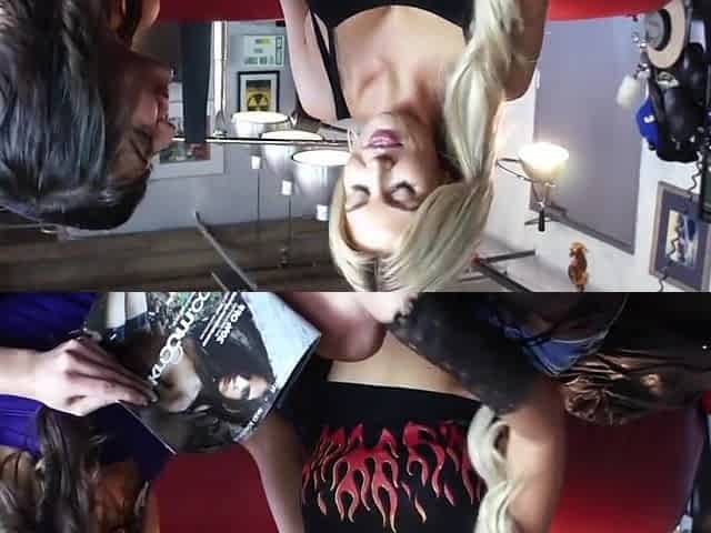 Ryan Keely and Nicole Doshi - Blonde mature and brunette in lesbian strapon sex action