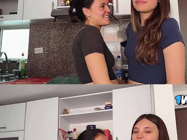 While Our Housekeeper Was Washing Dishes, My Girlfriend Was Riskily Licking Pussy Under the Table