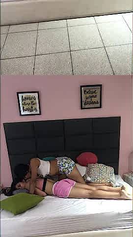 Venezuelans make a lesbo movie scene with Italian Sugar in Medellin, Colombia.
