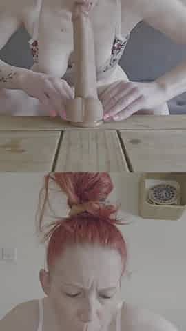 Stimulating My Clith with Tongue Vibrator Drilling My Pussy with 12inch Dildo