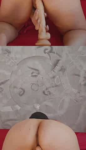 "Wife rides dildo for squirting"