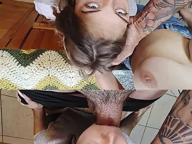 Neighbour wanted to lick our... for the 1st time (with smutty talk in the kitchen) - Lesbo-candys