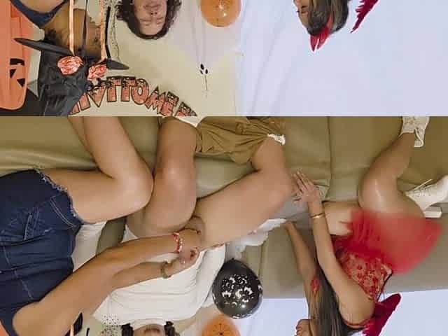 Halloween three-some with the gorgeous, large-booty devil and the immoral witch