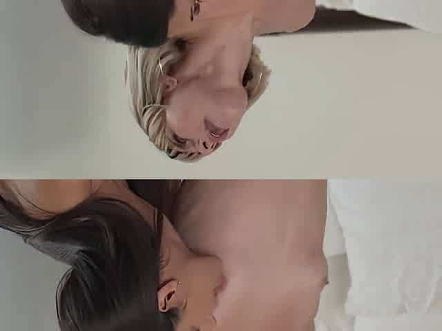 Morning sex, 2 lustful gals wakes up a man sucking him, then riding his knob and tongue, cumkiss