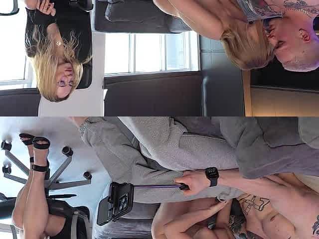 Busty amateur anal slut fucked in FFM POV with strapon lady