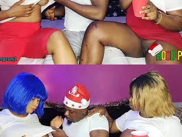 3 sexy black honeys in Christmas mood sucking, screwing and licking every other