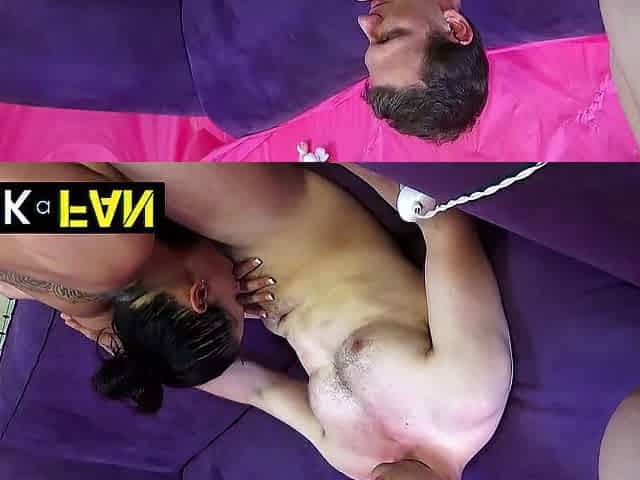 My breasty neighbour and her spouse with massive knob invite me to a trio and that babe sucks my anus