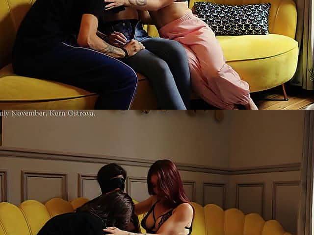 Double cumshot homemade threeesome Angel Wicky, Danielle Margot