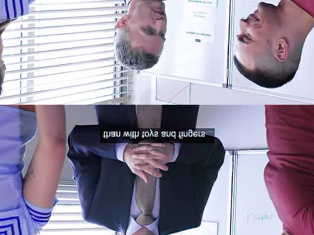 Busty maid having a threesome