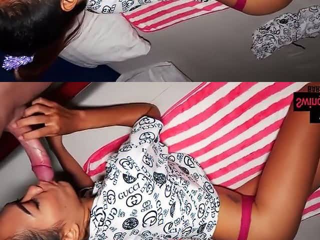 Tiny Thai teen works a big cock