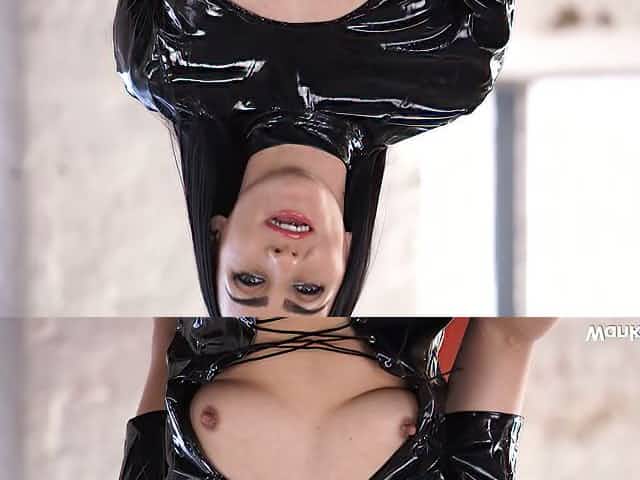Raven haired horny hoe in latex suit Chloe Lovette fingers her pussy with passion