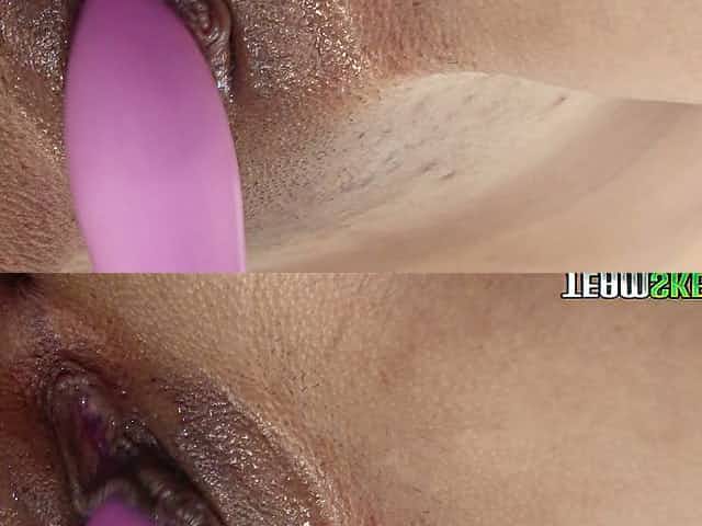 Trashy teen hoe with shaved pussy masturbates for cam