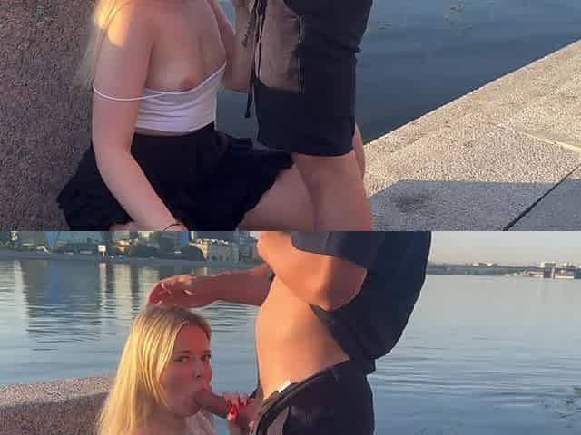 Blonde Hoe Fucks In Public On The Embankment!