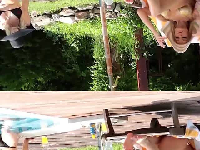 Its What we do - Blonde Bikini Babes Poolside Pussy Licking. British babe Victoria Summers in the black hat and tattoo enhanced