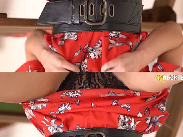 Zealous astonishing alone hottie in short skirt flashes her really awesome booty