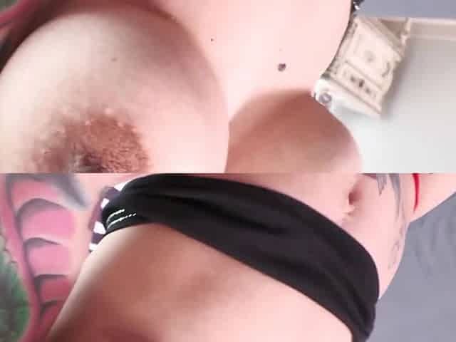 Tattooed hottie Melody Foxx strips down and reveals her big tits