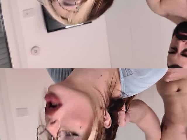 Tiny sweetheart Scarlett Storm takes some schlong from a geek