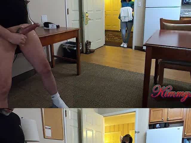 ROD FLASHING ADVENTURE pt1 OPEN DOOR HOTEL MAID WATCHES ME WANK MY LUBED WEENIE