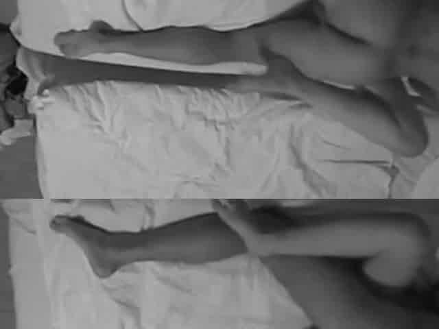Erotic dance in a hotel room with a large bed