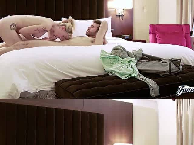 Busty blonde bombshell receives full service in a hotel room