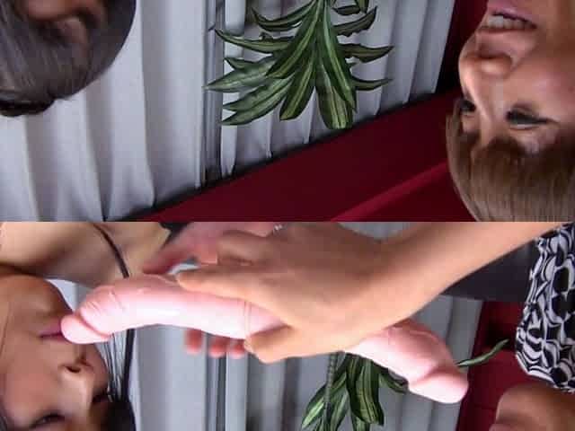 Breasty Oriental Hottie Gets DPed By Brunettes