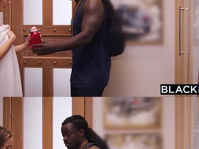 Big white cock drills dark pussy and deep throat of ebony hottie Boni Brown