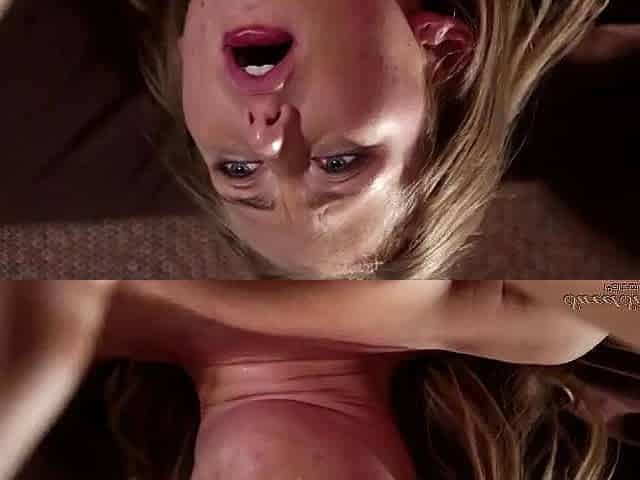 Close up with blonde hottie blowing a large dick