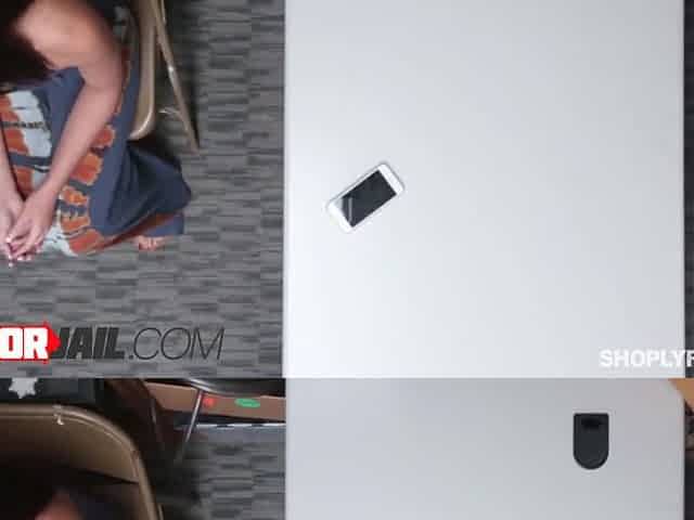 Brunette hair chick bangs her coworker in the stock room