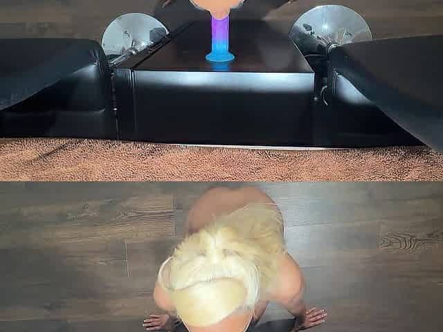 Solo golden-haired Sweety Hottie widens her legs on the kitchen counter,in VR.