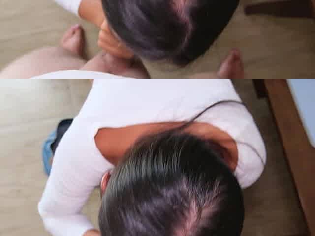 Slutty roommate swallows my cum while I work from home