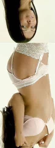 Skinny hottie Ella Jay in blue lingerie teasing a naked dude