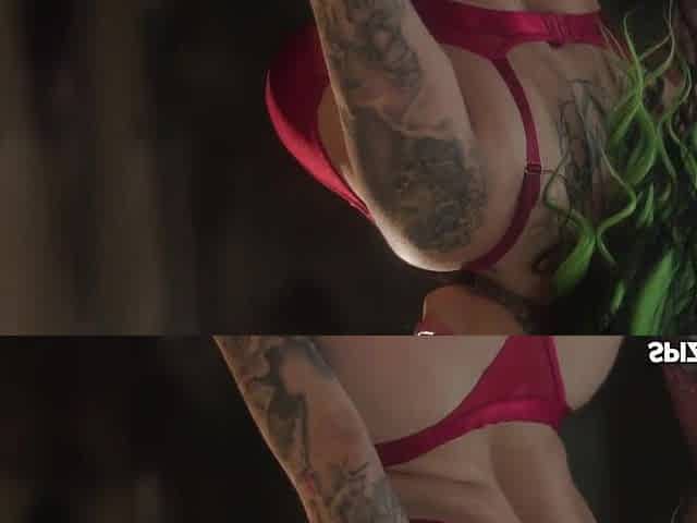 Tattooed hottie Genevieve Sinn gives a sloppy blowjob