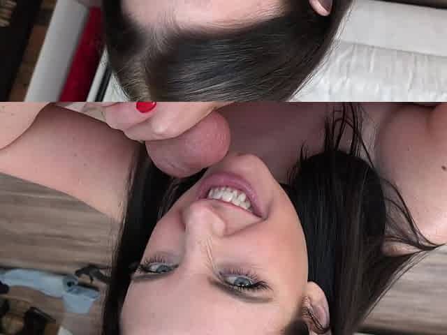Brunette hottie gives a sloppy blowjob before riding in cowgirl