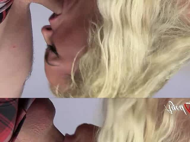 Blonde hottie and brunette slut licks and kisses each others