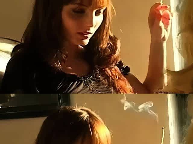 Breathtaking hottie ravishing herself with a cigarette