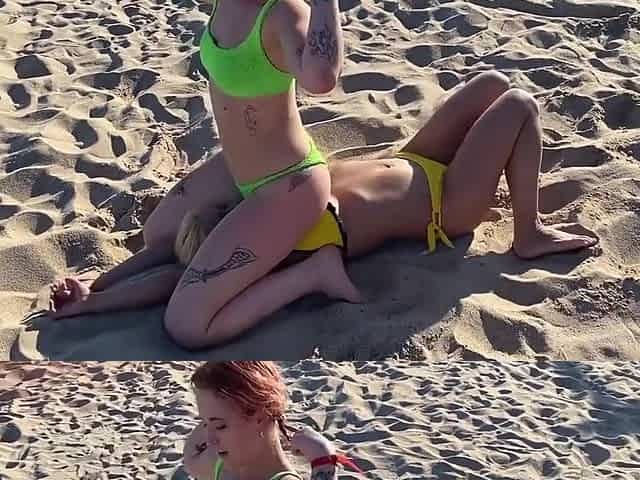 Two Lesbian Hotties Wrestling On The Beach And After That Start Kissing - Mx Bambi And Nikky Thorne
